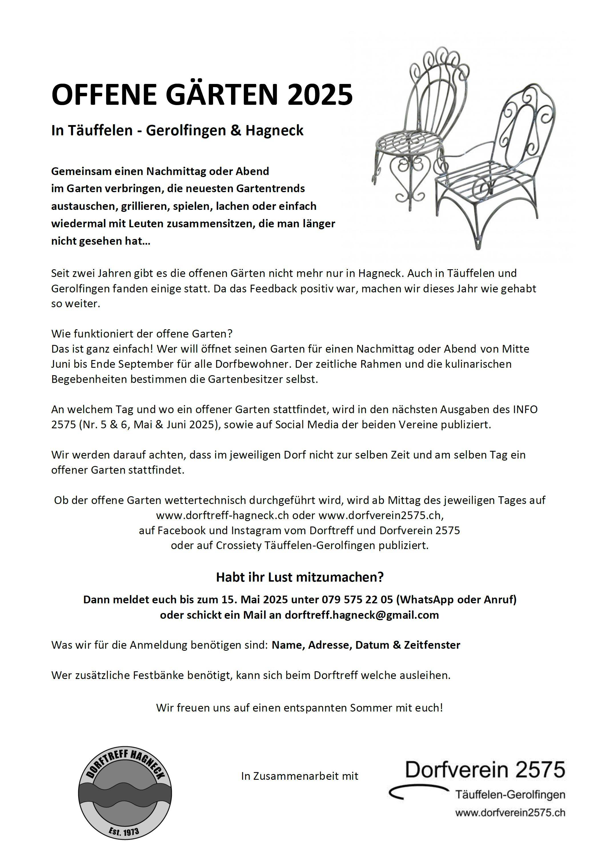 Bei Familie Zimmer, Rütistrasse 3, Hagneck – findet wie geplant statt –